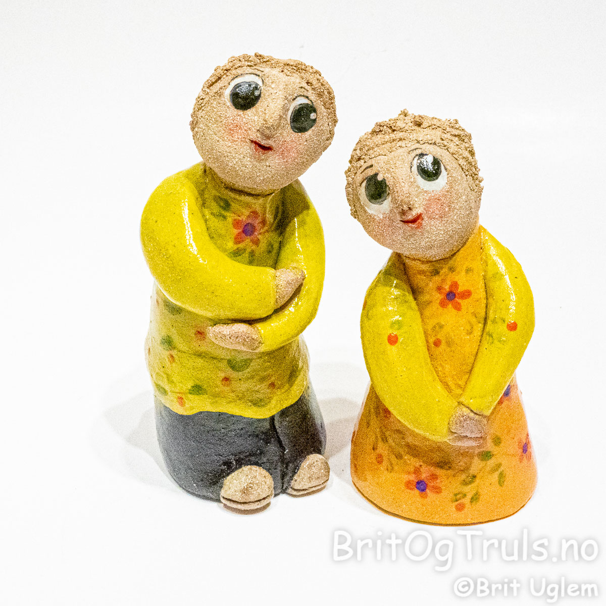 Fridtjof og Fia - kr. 1200 - Fridtjof h: 17cm 0,8kg. Fia h: 15cm 0,6kg